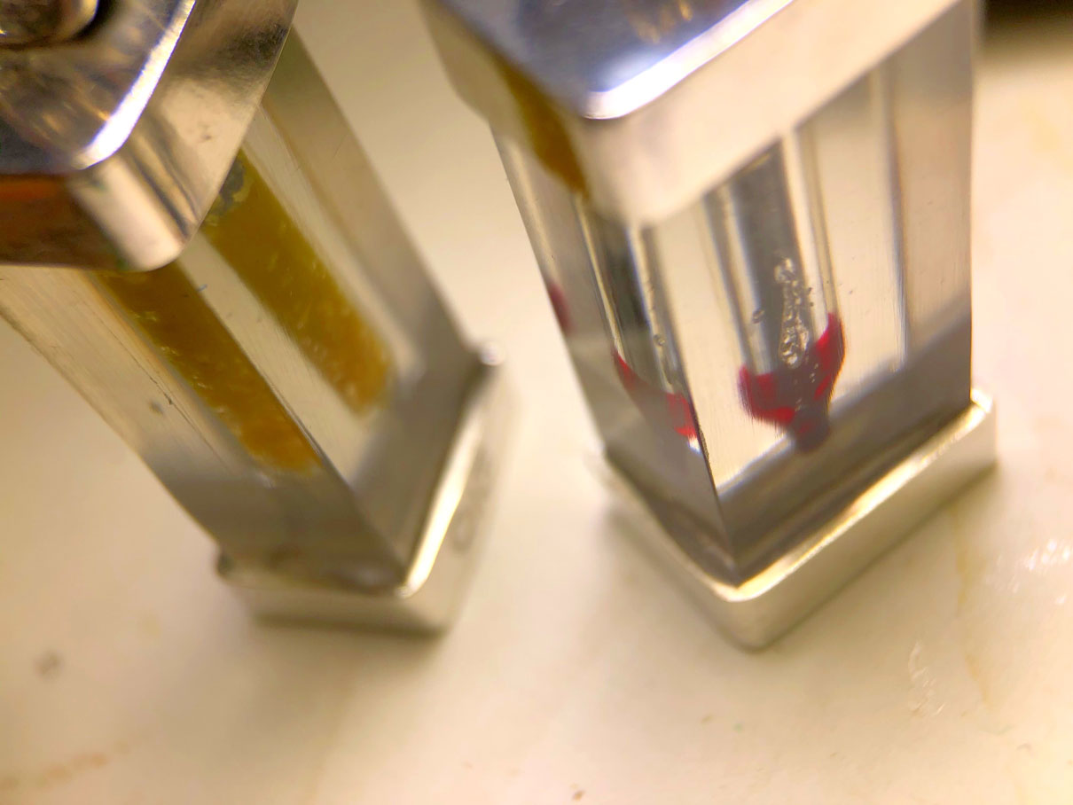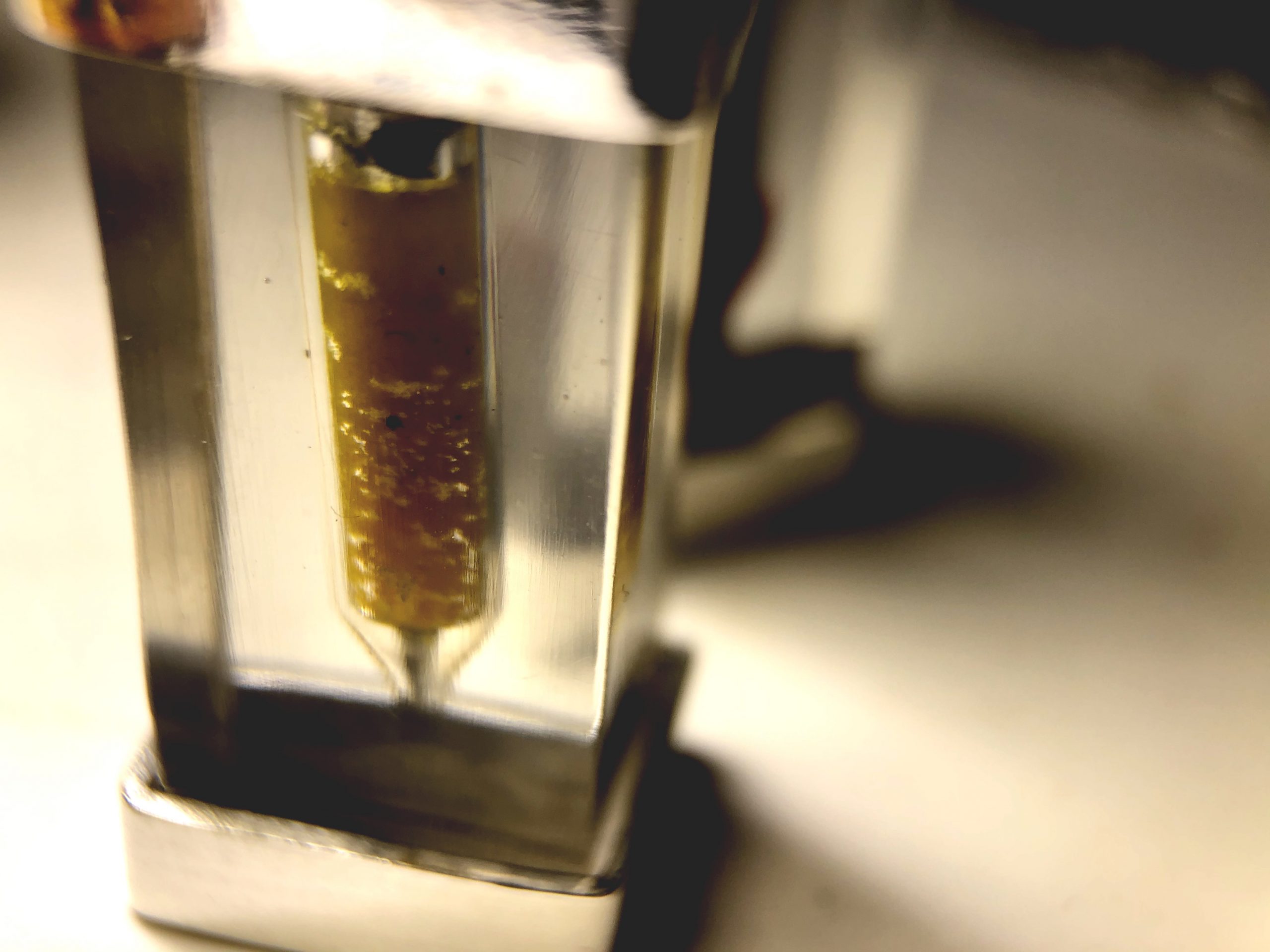 La pieza esta conformada de un envase de vidrio en cuyo interior son depositados las cenizas o restos de nuestra mascota. La resina viene cubierta en los extremos por dos capuchones de plata de aproximadamente 1.2 cm. x 1.6 cm. x 4 mm y uno de ellos lleva una pequeña argolla fija al centro en la parte superior. El peso aproximado de cada uno es de 2.5 gr.