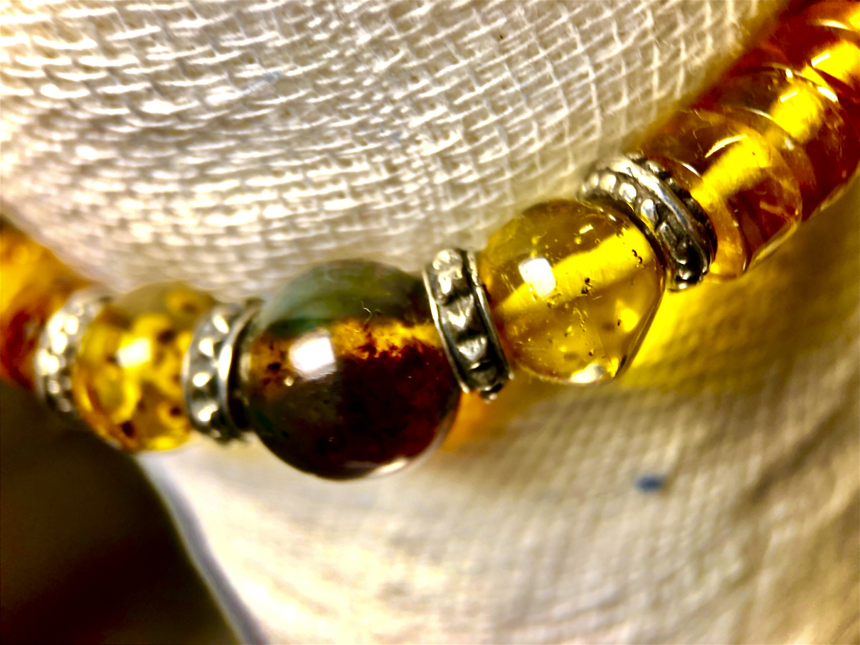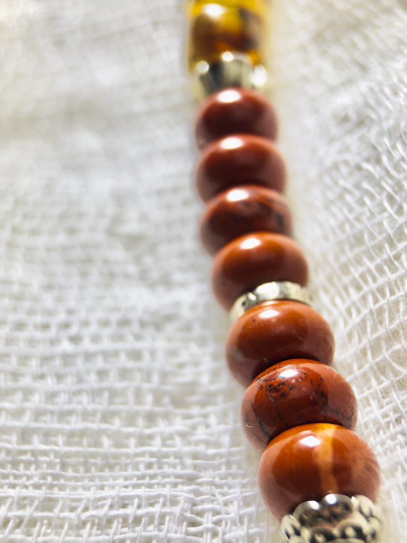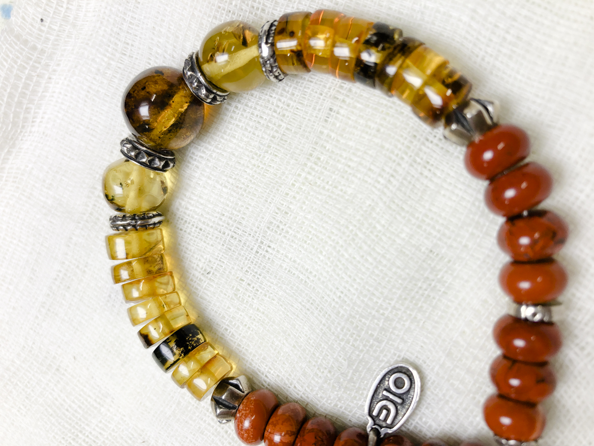Material: Jaspe sardónice (extremos) / Ámbar (central / laterales) / Separadores y quinto en Plata .925.