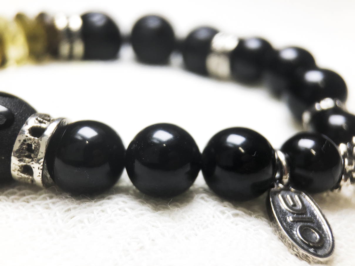 El poder del Ónix combinado con las cualidades del cuarzo ahumado. Juntos crean una excelente pieza que permite drenar energías negativas.